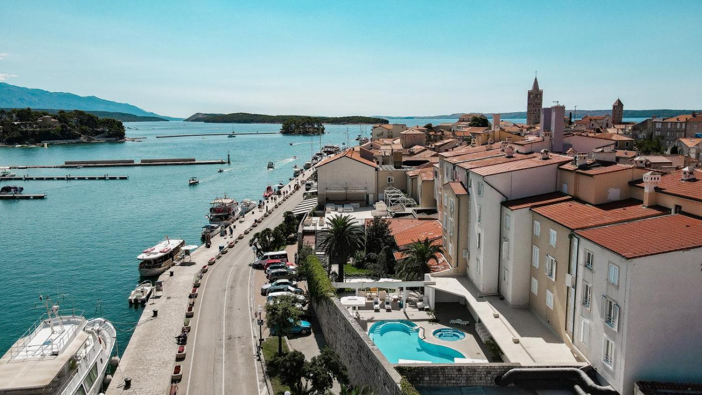 Hotel International położony jest przy nadmorskiej promenadzie w samym sercu średniowiecznego miasta Rab i oferuje klimatyzowane pokoje z bezpłatnym WiFi. Oferuje on centrum odnowy biologicznej oraz bar na tarasie z malowniczym widokiem na zatokę.