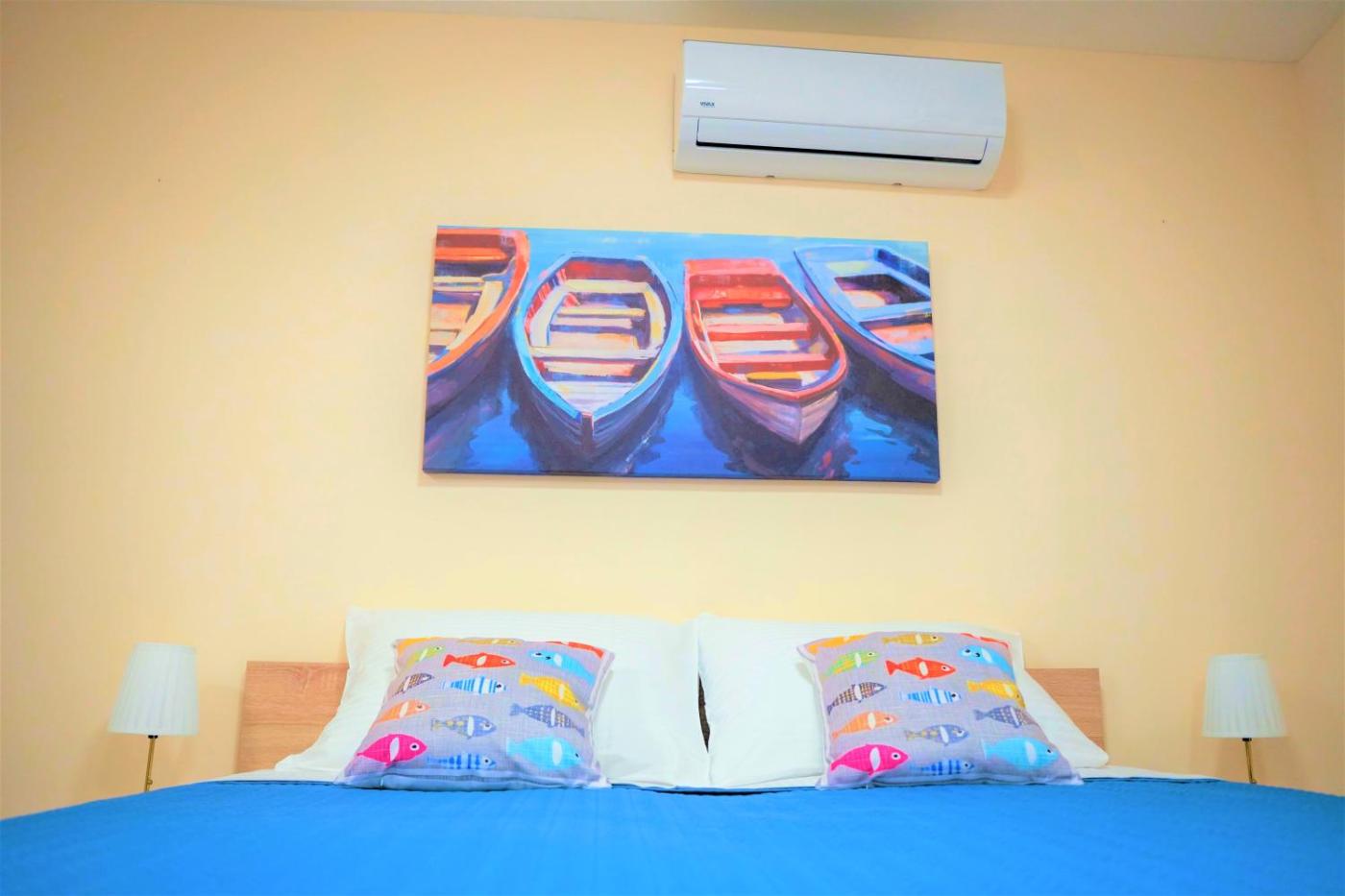 One-Bedroom Apartment. The air-conditioned apartment has 1 bedroom, 1 bathroom and a kitchen. The apartments kitchen is available for cooking and storing food. This apartment offers heating and a flat-screen TV. The unit has 1 bed.