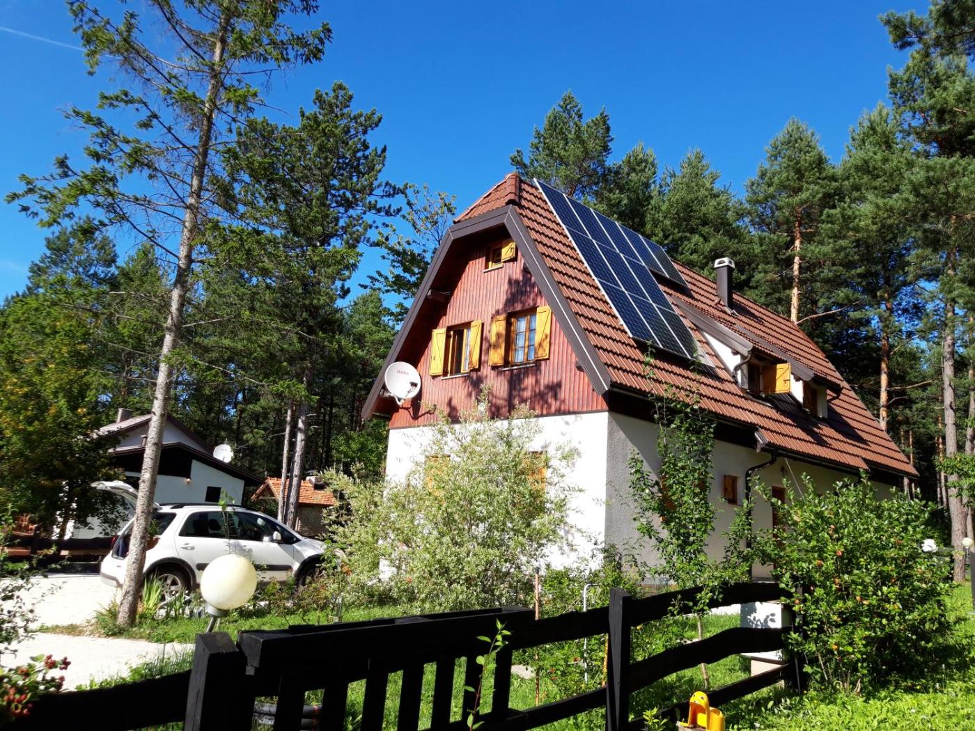Dom wakacyjny. The property is two buildingstogether with five bedrooms, is secluded in the natural forest of Plitvice Lakes National Park. Only the Guest has accessthe property during stay. We are Eco friendly; solar panels are used to generate energy. A big summer Garden mix with natural landscape. We have Outdoor Furniture; Sun Loungers, Hammock, Garden table and Benches. Games include Climbing frame and swing,Sandbox,Tennis-ball, Badminton, Card games, Dart. Dom wakacyjny - 16 osobowy. Powierzchnia pokoju ok.: 175 mkw.