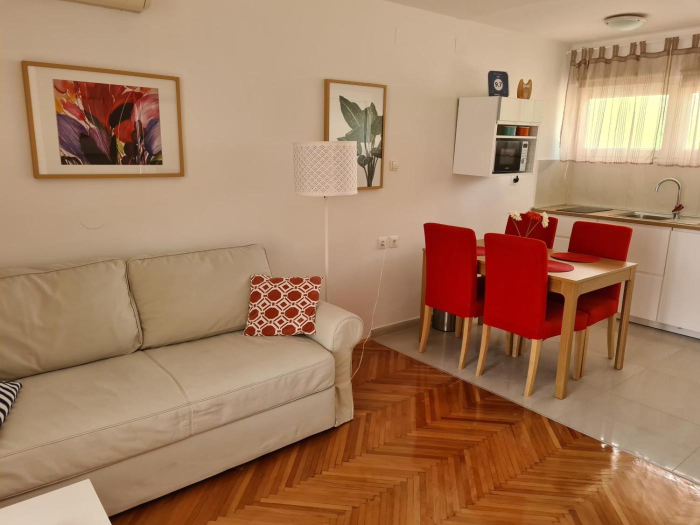 The apartment features 1 bedroom, 1 bathroom, bed linen, towels, a flat-screen TV with cable channels, a dining area, a fully equipped kitchen, and a balcony with garden views. The air-conditioned unit at the property features a walk-in shower and a dressing room. For added privacy, the accommodation has a private entrance and soundproofing.
