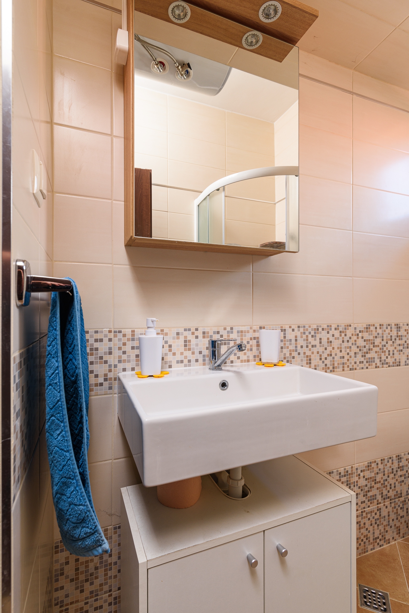 Apartament może przyjąć 8 gości. Łóżka znajdują się w sypialniach, których jest 3, na powierzchni 75m2. Goście mają dostęp do tarasu, by korzystać z ciepłych, letnich wieczorów. Z apartamentu roztacza się widok na morze. Grill jest dostępny tylko do użytku gości z tej kwatery. WLICZONE W CENĘ: taksa pobytowa, sprzątanie końcowe, klimatyzacja, parking, internet, żelazko, deska do prasowania, suszarka do włosów. Dostępność dodatkowych usług w rezerwowanym terminie oraz ich cenę (jeśli nie jest podana) należy sprawdzić wcześniej. Za dodatowe usługi, które nie zostały uwzględnione w kalkulacji ceny, płaci się bezpośrednio właścicielowi obiektu, pod warunkiem śe gość korzysta z tych usług.