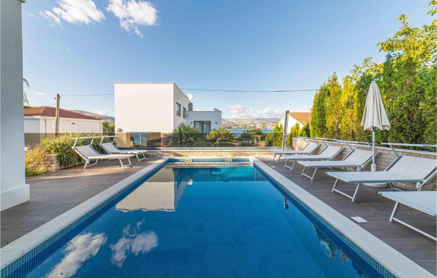 Obiekt Cozy Home In Okrug Gornji With Sauna położony jest w miejscowości Trogir i oferuje odkryty basen oraz widok na morze. Oferta domu wakacyjnego obejmuje prywatny basen.