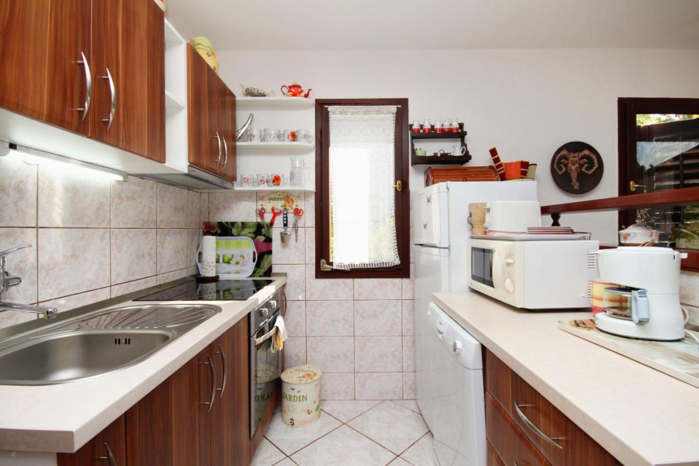W domu wakacyjnym do dyspozycji gości przygotowano kilka sypialni (3), kuchnię ze standardowym wyposażeniem, takim jak lodówka i zmywarka, a także kilka łazienek (2) z prysznicem. Wyposażenie obejmuje także pralkę oraz telewizor z dostępem do kanałów satelitarnych.