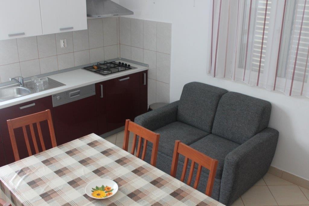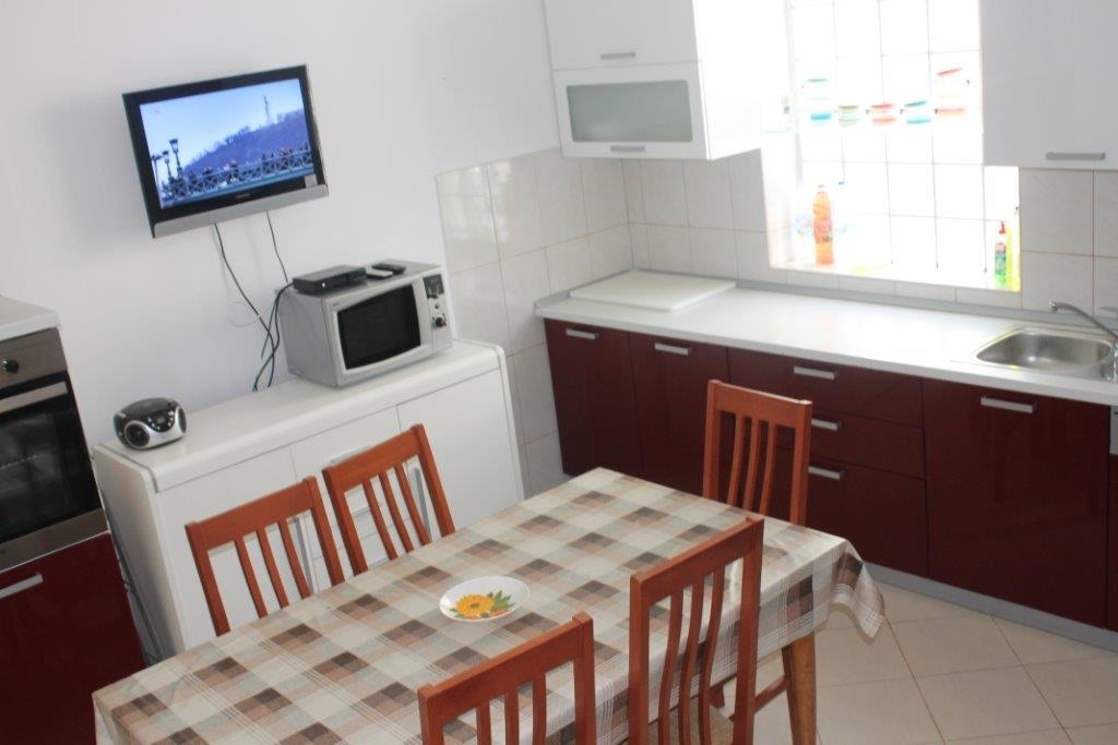 Dom może przyjąć 8 gości. Łóżka znajdują się w sypialniach, których jest 3, na powierzchni 81m2. Goście mają dostęp do tarasu, by korzystać z ciepłych, letnich wieczorów. Grill jest dostępny tylko do użytku gości z tej kwatery. W kwaterze dozwolony jest pobyt zwierzęcia domowego, za dopłatą. WLICZONE W CENĘ: taksa pobytowa, sprzątanie końcowe, klimatyzacja, parking, internet, łóżeczko dziecięce, żelazko, deska do prasowania, suszarka do włosów, przenośny grill. NIEOBOWIĄZKOWE KOSZTY DODATKOWE: łódź (60,00 € za nocleg), miejsce do cumowania łodzi (25,00 € za nocleg), zwierzęta domowe (15,00 € za nocleg), dostawka (7,00 € za nocleg). Dostępność dodatkowych usług w rezerwowanym terminie oraz ich cenę (jeśli nie jest podana) należy sprawdzić wcześniej. Za dodatowe usługi, które nie zostały uwzględnione w kalkulacji ceny, płaci się bezpośrednio właścicielowi obiektu, pod warunkiem śe gość korzysta z tych usług. Zniżki od ceny podstawowej: bezpłatny dzień 28=25 (na pobyt na 28 dni lub więcej otrzymują Państwo 3 dni gratis na pobyt do 31.12.2026).