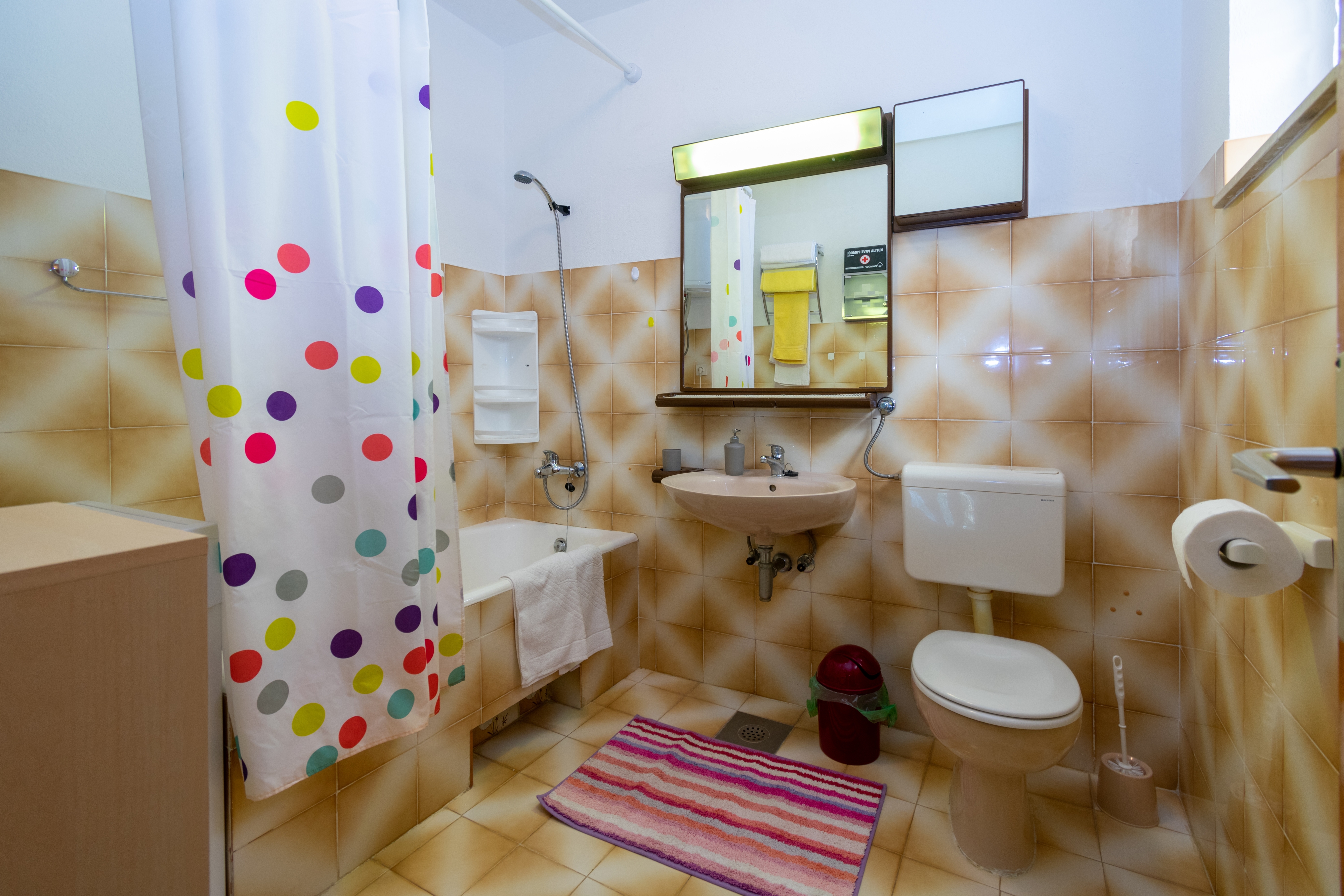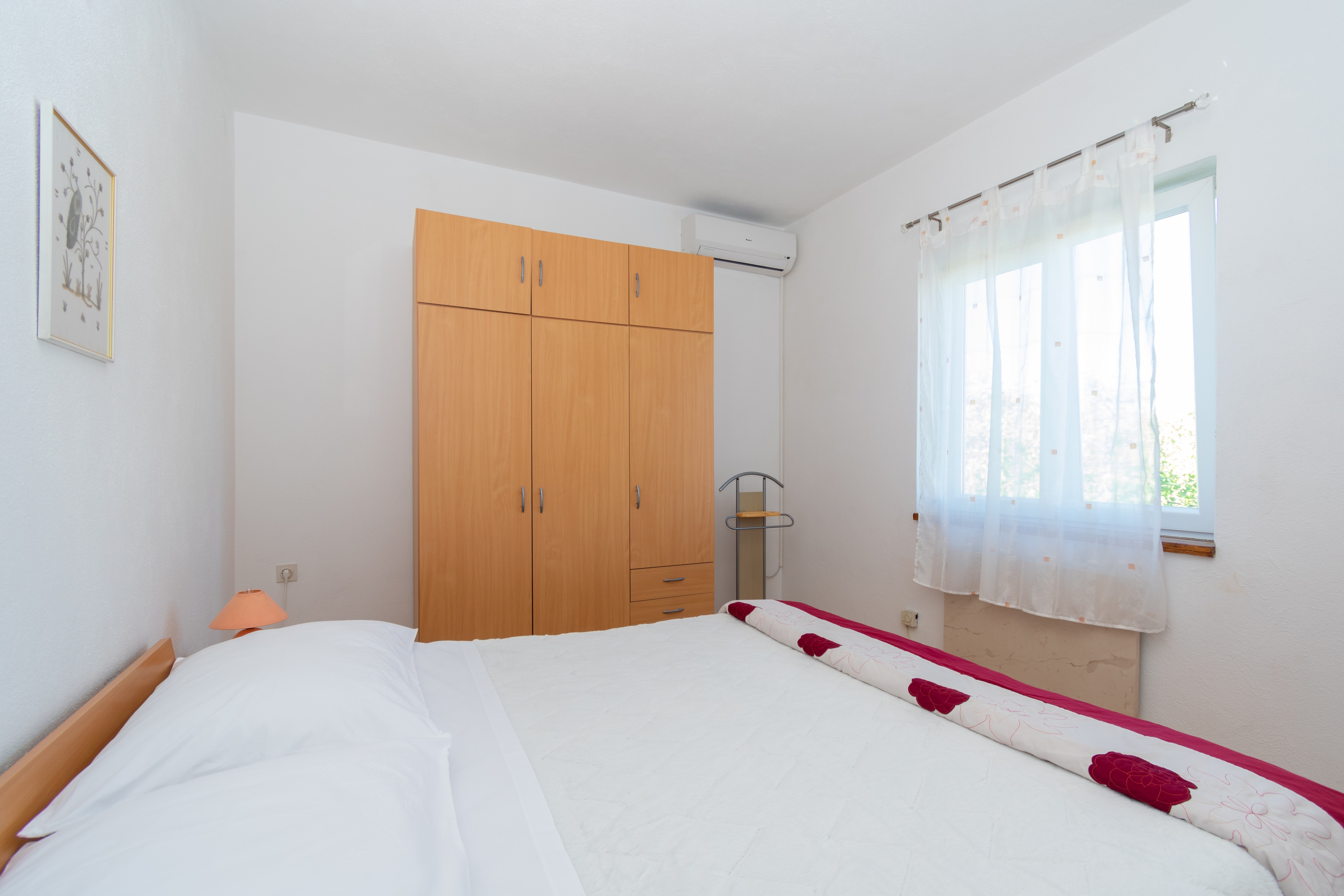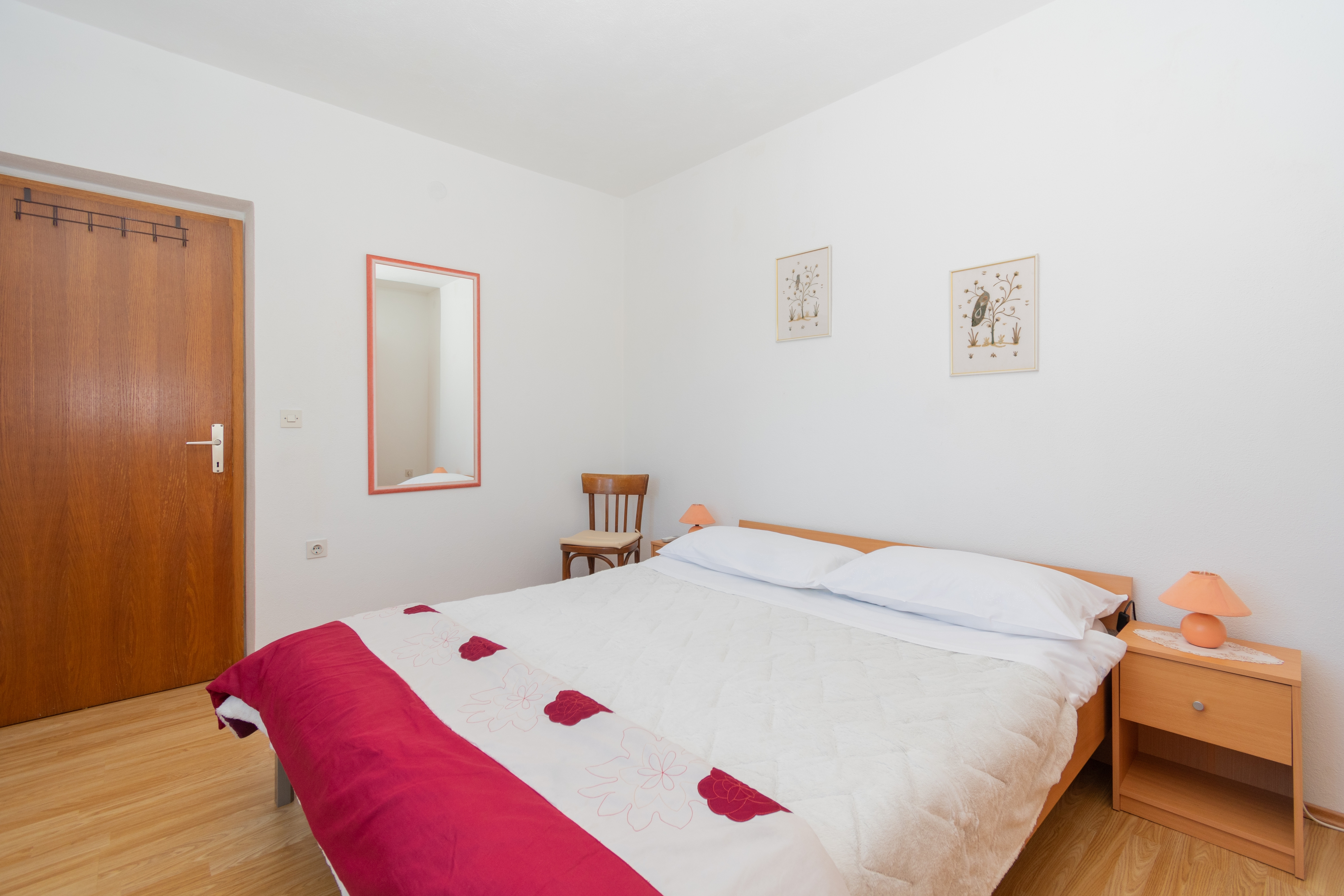 Apartament może przyjąć 5 gości. Łóżka znajdują się w sypialniach, których jest 2, oraz w pokoju dziennym, na powierzchni 67m2. Goście mają dostęp do tarasu, by korzystać z ciepłych, letnich wieczorów. Z apartamentu roztacza się widok na morze. Możliwość przygotowywania posiłków poprzez korzystanie ze wspólnego grilla. WLICZONE W CENĘ: taksa pobytowa, sprzątanie końcowe, klimatyzacja, parking, internet, łóżeczko dziecięce, żelazko, deska do prasowania, suszarka do włosów. Dostępność dodatkowych usług w rezerwowanym terminie oraz ich cenę (jeśli nie jest podana) należy sprawdzić wcześniej. Za dodatowe usługi, które nie zostały uwzględnione w kalkulacji ceny, płaci się bezpośrednio właścicielowi obiektu, pod warunkiem śe gość korzysta z tych usług. Zniżki od ceny podstawowej: bezpłatny dzień 14=13 (przy pobycie, trwającym co najmniej 14 dni, otrzymujecie jeden bezpłatny dzień na pobyt do 31.12.2026).