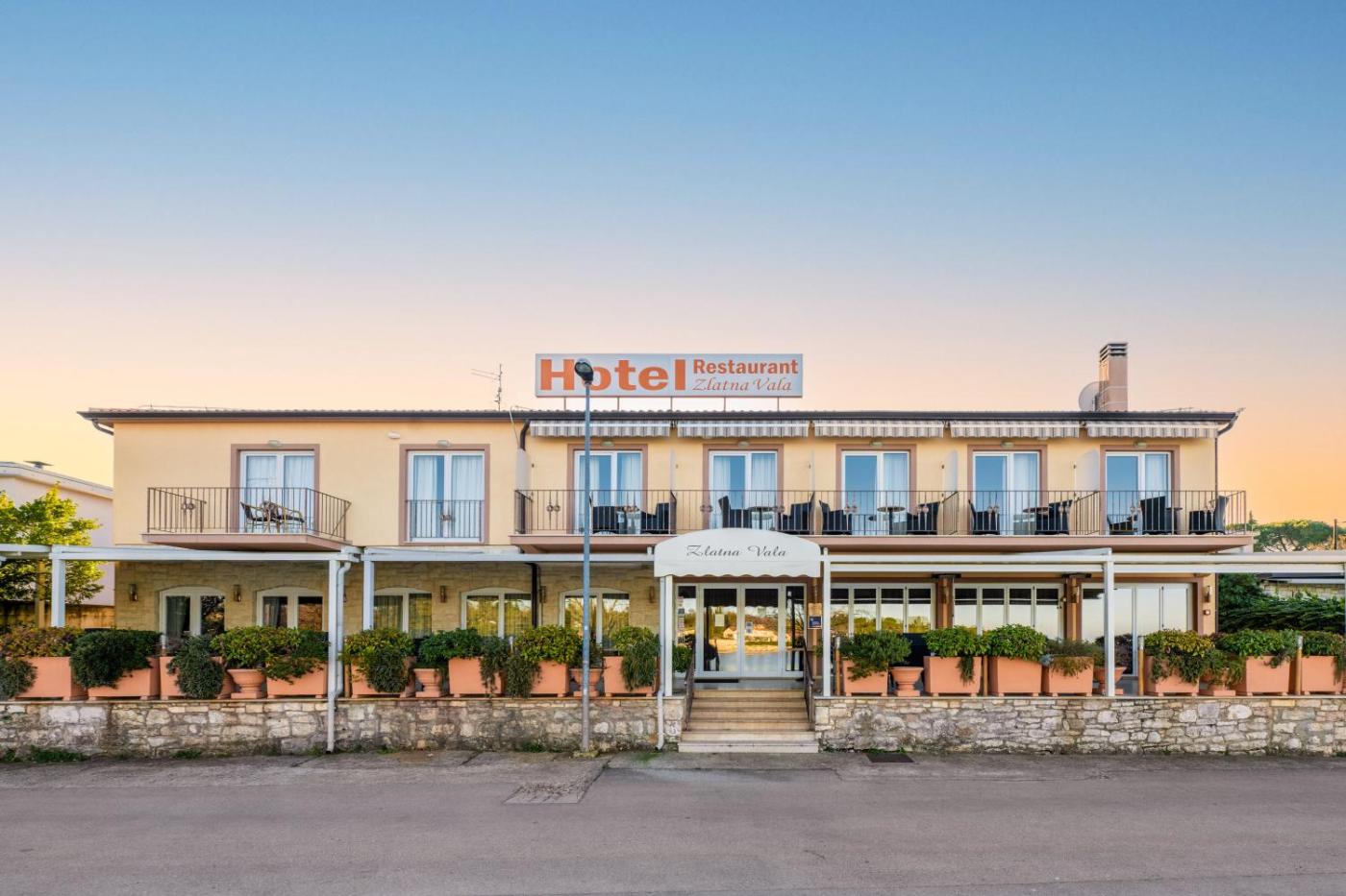 Usytuowany nad brzegiem morza hotel Zlatna Vala oferuje zakwaterowanie w klimatyzowanych pokojach z balkonem, bezpłatny bezprzewodowy dostęp do Internetu i kort tenisowy. Zaledwie 5 km dzieli hotel od centrum miasta Umag.