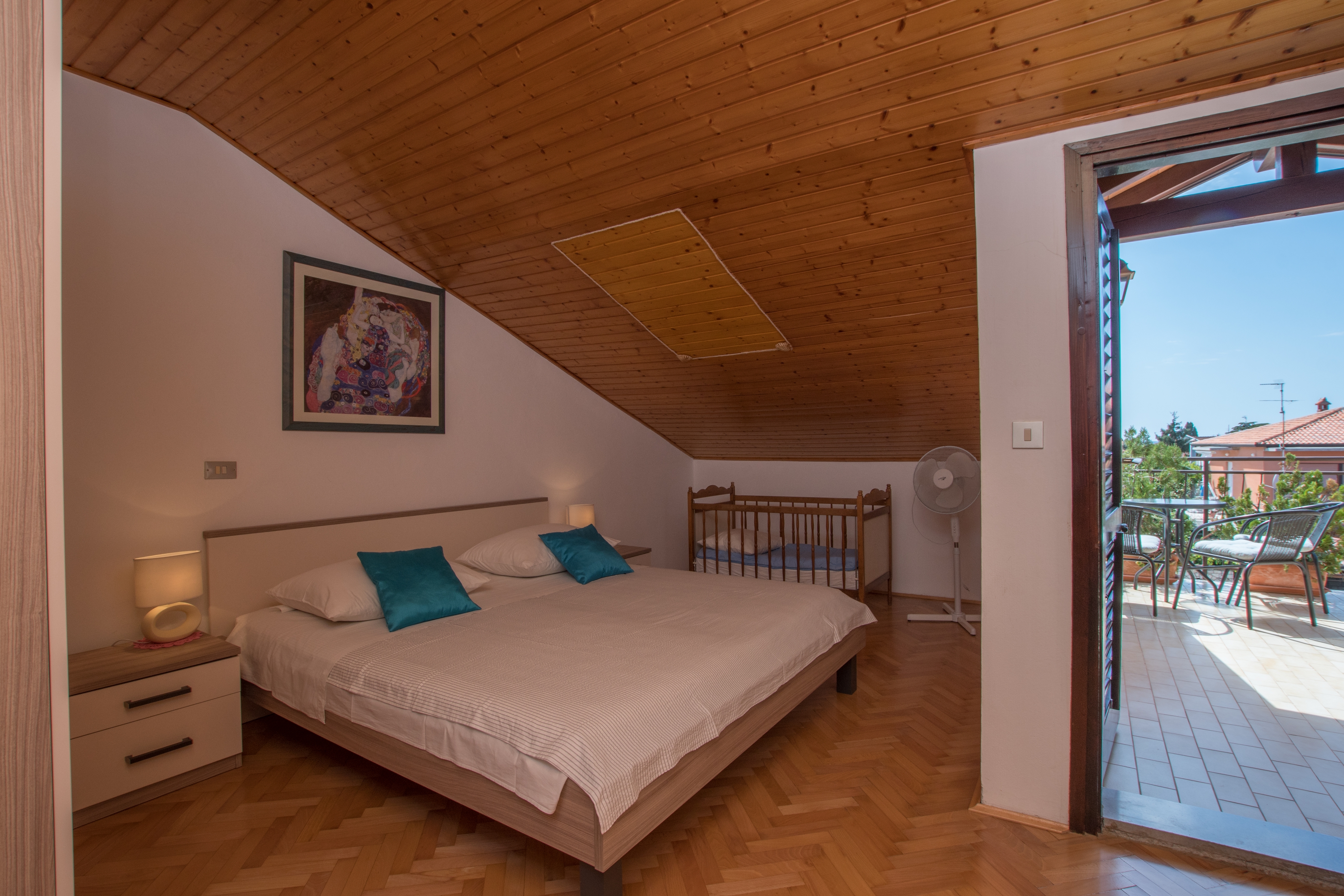 Apartament może przyjąć 4 gości. Łóżka znajdują się w sypialniach, których jest 2, na powierzchni 63m2. Goście mają dostęp do balkonu, by korzystać z ciepłych, letnich wieczorów. Z apartamentu roztacza się widok na morze. Możliwość przygotowywania posiłków poprzez korzystanie ze wspólnego grilla. W kwaterze dozwolony jest pobyt zwierzęcia domowego, za dopłatą. WLICZONE W CENĘ: taksa pobytowa, sprzątanie końcowe, klimatyzacja, parking, internet, łóżeczko dziecięce, suszarka do włosów, przenośny grill. OBOWIĄZKOWE KOSZTY DODATKOWE: dopłata za krótki termin (procent dopłaty w zalezności od liczby noclegów: 30% - 1, 20% - 2, 10% - 3). NIEOBOWIĄZKOWE KOSZTY DODATKOWE: pranie bielizny (10,00 € pranie), zwierzęta domowe (7,00 € za nocleg). Dostępność dodatkowych usług w rezerwowanym terminie oraz ich cenę (jeśli nie jest podana) należy sprawdzić wcześniej. Za dodatowe usługi, które nie zostały uwzględnione w kalkulacji ceny, płaci się bezpośrednio właścicielowi obiektu, pod warunkiem śe gość korzysta z tych usług. Zniżki od ceny podstawowej: bezpłatny dzień 14=13 (przy pobycie, trwającym co najmniej 14 dni, otrzymujecie jeden bezpłatny dzień na pobyt do 31.12.2026).