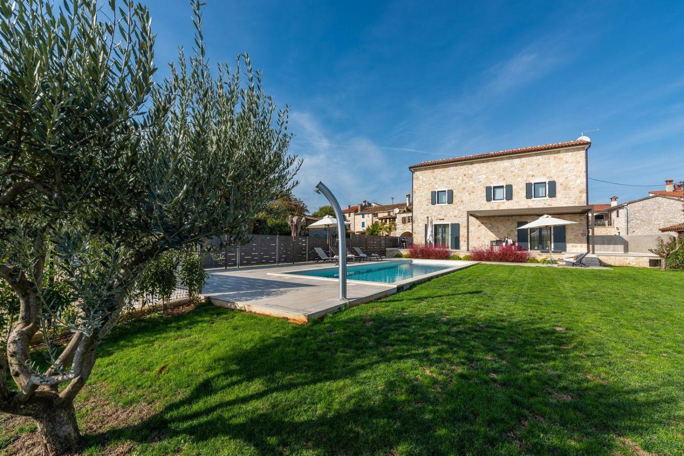 Obiekt Atemberaubende Steinvila mit privatem Salzwasserpool mit bekannter Taverne ums Eck położony jest przy plaży w miejscowości Veleniki i zapewnia bezpłatne Wi-Fi. Odległość ważnych miejsc od obiektu: Park wodny Istralandia – 25 km. Oferta domu wakacyjnego obejmuje prywatny basen, ogród oraz bezpłatny prywatny parking.