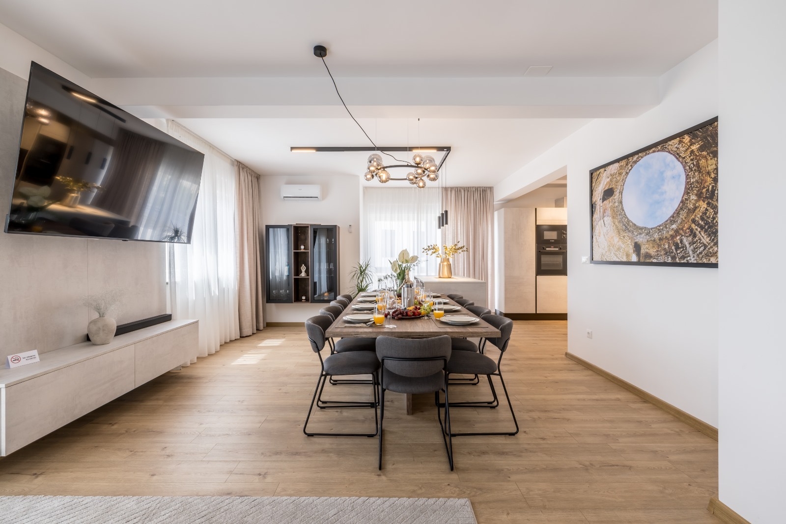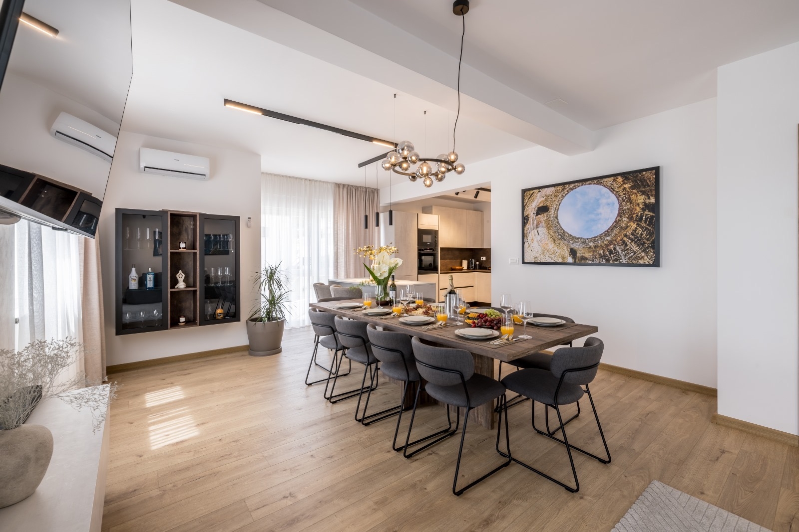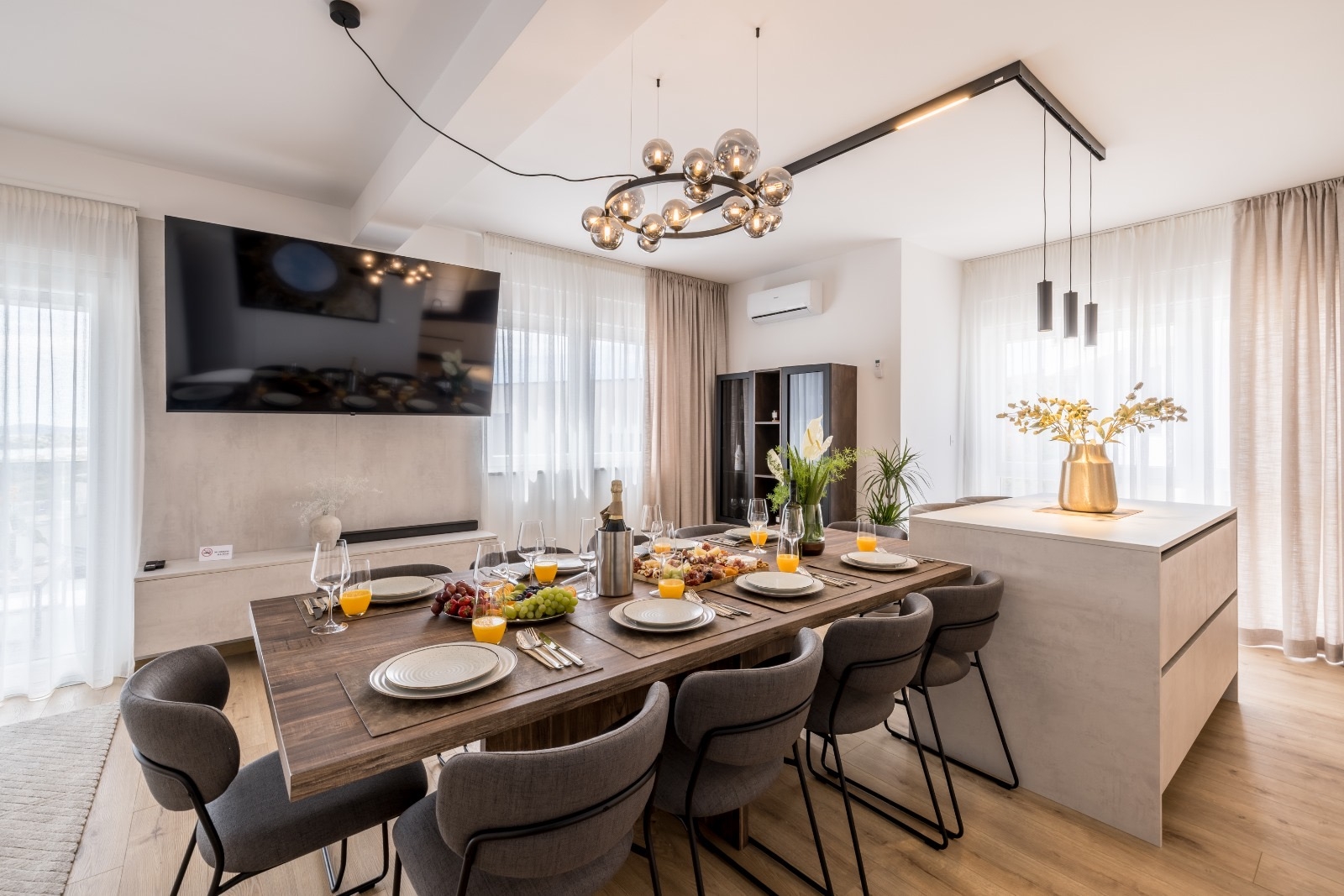 Dom może przyjąć 10 gości. Łóżka znajdują się w sypialniach, których jest 4, oraz w pokoju dziennym, na powierzchni 223m2. Goście mają dostęp do tarasu, by korzystać z ciepłych, letnich wieczorów. Z domu wakacyjnego roztacza się widok na morze. Grill jest dostępny tylko do użytku gości z tej kwatery. W trakcie swojego pobytu goście mogą zrelakswować się w prywatnym basenie. WLICZONE W CENĘ: taksa pobytowa, sprzątanie końcowe, klimatyzacja, basen, parking, internet, łóżeczko dziecięce, żelazko, deska do prasowania, suszarka do włosów, parasol, leżaki. Dostępność dodatkowych usług w rezerwowanym terminie oraz ich cenę (jeśli nie jest podana) należy sprawdzić wcześniej. Za dodatowe usługi, które nie zostały uwzględnione w kalkulacji ceny, płaci się bezpośrednio właścicielowi obiektu, pod warunkiem śe gość korzysta z tych usług.