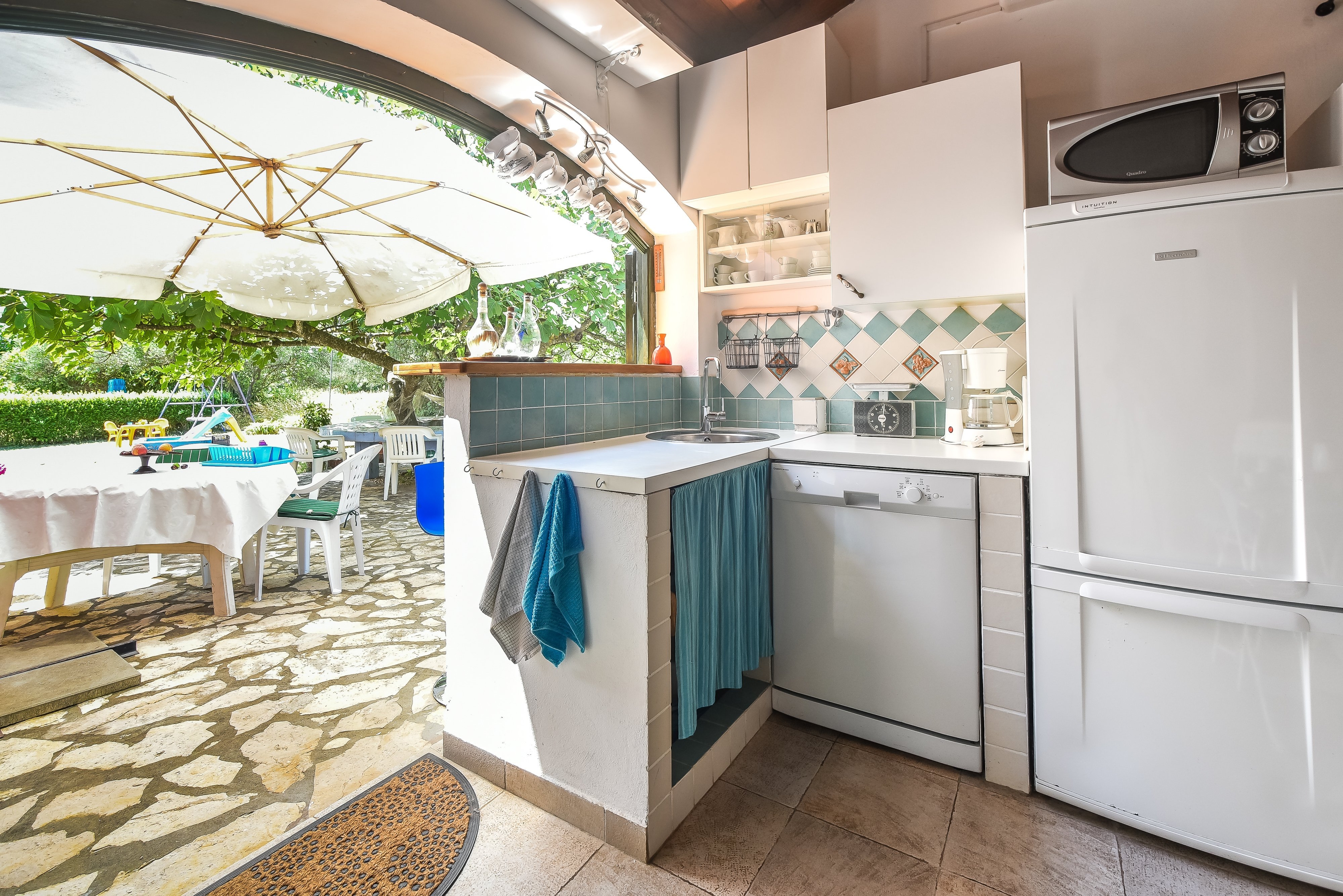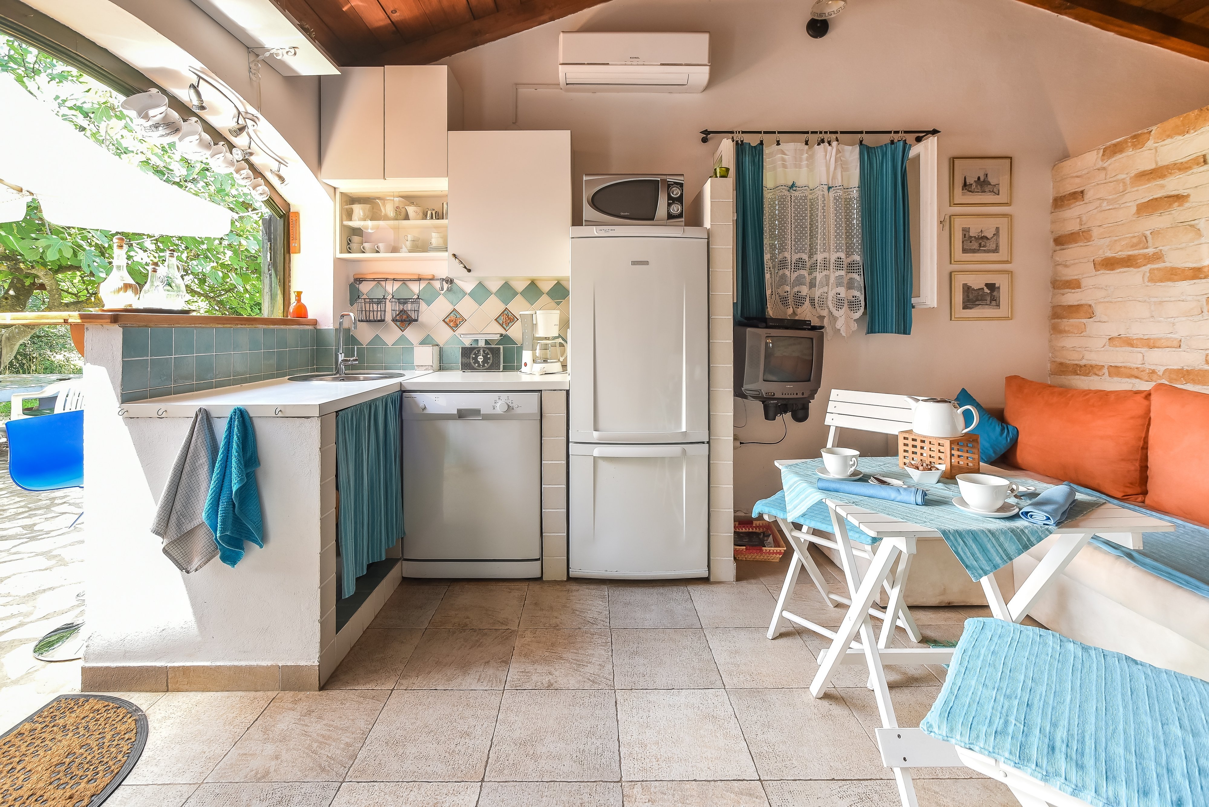 Studio może przyjąć 2 gości. Łóżka znajdują się w sypialniach, których jest 1, na powierzchni 22m2. Goście mają dostęp do tarasu, by korzystać z ciepłych, letnich wieczorów. Możliwość przygotowywania posiłków poprzez korzystanie ze wspólnego grilla. WLICZONE W CENĘ: taksa pobytowa, sprzątanie końcowe, parking, internet, łóżeczko dziecięce, żelazko, deska do prasowania, suszarka do włosów, parasol, 1 łóżeczko dziecięce (zawarte w cenie). OBOWIĄZKOWE KOSZTY DODATKOWE: dopłata za krótki termin (procent dopłaty w zalezności od liczby noclegów: 30% - 1, 20% - 2, 10% - 3). NIEOBOWIĄZKOWE KOSZTY DODATKOWE: klimatyzacja (10,00 € za nocleg), pranie bielizny (5,00 € pranie), miejsce do cumowania łodzi (5,00 € za nocleg). Dostępność dodatkowych usług w rezerwowanym terminie oraz ich cenę (jeśli nie jest podana) należy sprawdzić wcześniej. Za dodatowe usługi, które nie zostały uwzględnione w kalkulacji ceny, płaci się bezpośrednio właścicielowi obiektu, pod warunkiem śe gość korzysta z tych usług.