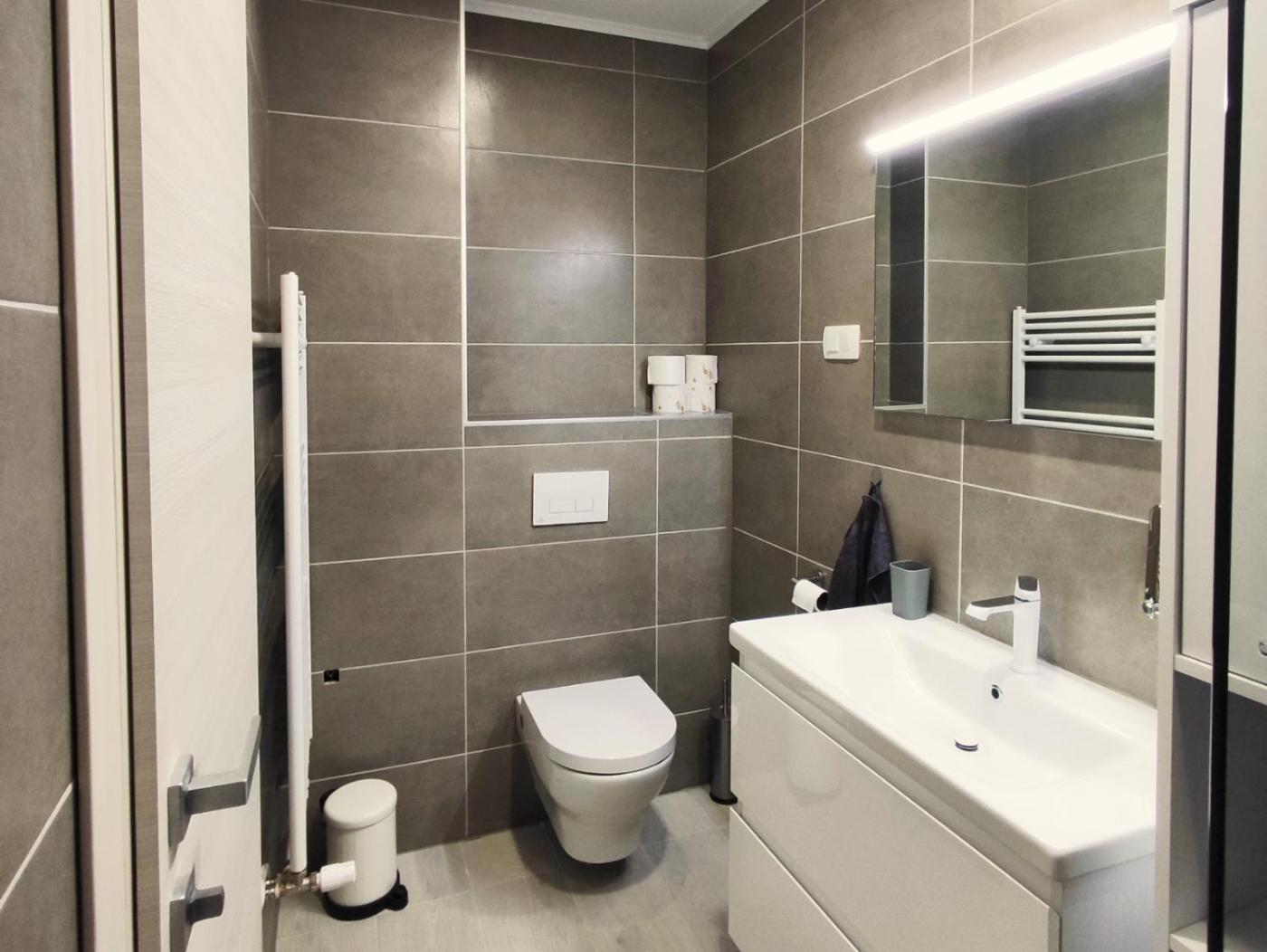 Apartament z 1 sypialnią. This apartment comes with 1 living room, 1 separate bedroom and 1 bathroom with a walk-in shower and free toiletries. Guests can make meals in the kitchen that features a stovetop, a refrigerator, kitchenware and an oven. The apartment has carpeted floors, a seating area with a flat-screen TV with streaming services, air conditioning, a washing machine, as well as soundproof walls. The unit has 2 beds. Apartament - 4 osobowy. Powierzchnia pokoju ok.: 45 mkw.